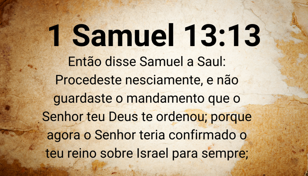 Por Que Uma Escolha Errada Pode Mudar o Rumo da Sua Vida? Comprar na Amazon O primeiro rei de Israel está a um passo de conquistar algo grandioso, mas, em um momento de fraqueza, toma uma decisão que muda tudo – para pior. Esse é o drama vivido por Saul em 1 Samuel 13:13, quando o profeta Samuel o confronta com palavras cortantes: “Procedeste nesciamente; não guardaste o mandamento que o Senhor, teu Deus, te ordenou; porque agora o Senhor teria confirmado o teu reino sobre Israel para sempre.” A história de Saul não é apenas um relato antigo; é um alerta poderoso sobre como nossas escolhas moldam nosso futuro. Por que isso importa para você? Porque, assim como Saul, todos nós enfrentamos momentos em que a obediência a Deus ou a impulsividade definem o curso de nossas vidas. Neste versículo, vamos explorar os ensinamentos profundos de 1 Samuel 13:13 e como eles se aplicam à nossa realidade atual. Você descobrirá por que a obediência é mais do que uma regra religiosa – é uma chave para bênçãos duradouras – e como evitar os erros que custaram caro a Saul. Prepare-se para uma jornada prática e transformadora que vai te ajudar a tomar decisões alinhadas com o propósito de Deus para sua vida! O Que Aconteceu com Saul em 1 Samuel 13:13? Saul, o primeiro rei de Israel, começou com grande potencial. Escolhido por Deus e ungido por Samuel, ele tinha tudo para ser um líder abençoado. Mas em 1 Samuel 13, ele enfrenta uma situação de pressão: o exército filisteu se aproxima, seus soldados estão desertando, e Samuel, que deveria oferecer um sacrifício a Deus, está atrasado. Saul, então, toma uma decisão impulsiva: ele mesmo oferece o sacrifício, algo que só os sacerdotes poderiam fazer. Quando Samuel chega, ele o repreende duramente: “Procedeste nesciamente.” O resultado? Saul perdeu a promessa de um reino eterno. Esse momento revela uma verdade essencial: agir por conta própria, sem esperar por Deus, pode parecer uma solução rápida, mas traz consequências duradouras. Saul agiu movido pelo medo e pela impaciência, ignorando o mandamento de Deus. Quantas vezes nós fazemos o mesmo, tomando atalhos em vez de confiar no tempo certo do Senhor? Por Que a Obediência a Deus é Tão Crucial? A Bíblia é clara sobre a importância da obediência. Em Deuteronômio 28:1, Deus promete: “Se ouvires, pois, atentamente a voz do Senhor, teu Deus, tendo cuidado de guardar todos os seus mandamentos que hoje te ordeno, o Senhor, teu Deus, te exaltará sobre todas as nações da terra.” A obediência não é apenas uma questão de seguir regras; é um ato de confiança e alinhamento com o plano divino. No caso de Saul, sua desobediência foi um sinal de que ele valorizou mais sua lógica humana do que a direção de Deus. Pense nisso como um GPS espiritual: quando ignoramos as instruções, podemos até chegar a algum lugar, mas não ao destino que Deus preparou. Obedecer é escolher o melhor caminho, mesmo quando ele exige paciência ou sacrifício. Como o Medo e a Impaciência Nos Levam ao Erro? Saul não agiu por maldade, mas por medo. Seus homens estavam fugindo, o inimigo estava às portas, e o relógio parecia estar contra ele. Em 1 Samuel 13:11-12, ele justifica sua atitude: “Vendo eu que o povo se espalhava de mim, e que tu não vinhas nos dias aprazados, e que os filisteus já se tinham ajuntado, disse eu: Agora descerão os filisteus contra mim; por isso, me constrangi e ofereci o holocausto.” O medo o levou à impaciência, e a impaciência o levou ao pecado. Esse padrão é comum hoje. Quantas vezes tomamos decisões precipitadas – como aceitar um emprego errado, iniciar um relacionamento sem orientação ou gastar além do que podemos – porque temos medo de esperar? Provérbios 3:5-6 nos ensina: “Confia no Senhor de todo o teu coração e não te estribes no teu próprio entendimento. Reconhece-o em todos os teus caminhos, e ele endireitará as tuas veredas.” Confiar em Deus é o antídoto contra a impulsividade. Quais São as Consequências de Ignorar os Mandamentos de Deus? A repreensão de Samuel a Saul em 1 Samuel 13:13 não foi apenas um aviso; foi uma sentença. Deus tinha planos de estabelecer o reino de Saul para sempre, mas sua desobediência mudou essa história. O versículo seguinte, 1 Samuel 13:14, diz: “Agora, o teu reino não subsistirá; já tem buscado o Senhor para si um homem segundo o seu coração.” Esse homem seria Davi, que substituiu Saul como rei. As consequências de desobedecer não são apenas espirituais; elas afetam nossa vida prática. Por exemplo, imagine alguém que ignora conselhos bíblicos sobre finanças (como evitar dívidas em Provérbios 22:7) e acaba em um ciclo de estresse e escassez. Ou alguém que desrespeita o descanso ordenado por Deus (Êxodo 20:8-10) e enfrenta esgotamento. Desobedecer custa caro, mas obedecer abre portas para bênçãos. Como Podemos Aprender com o Erro de Saul na Vida Diária? A história de Saul não é apenas uma tragédia; é uma lição. Aqui estão algumas maneiras práticas de aplicar esse ensino: Espere o tempo de Deus: Em vez de agir por impulso, ore e busque direção. Salmos 27:14 diz: “Espera no Senhor, anima-te, e ele fortalecerá o teu coração.” Resista ao medo: Quando a pressão aumenta, lembre-se de 2 Timóteo 1:7: “Porque Deus não nos deu o espírito de temor, mas de fortaleza, e de amor, e de moderação.” Valorize a obediência acima dos resultados: Saul queria vencer a batalha, mas perdeu o reino. Obedecer a Deus é mais importante do que o sucesso imediato. Pense em uma situação recente em que você esteve tentado a “oferecer o sacrifício” por conta própria. Como teria sido diferente se você tivesse esperado por Deus? O Que a Bíblia Ensina Sobre Recuperar-se de Erros? Mesmo quando falhamos como Saul, há esperança. Deus é misericordioso e oferece restauração. Em 1 João 1:9, lemos: “Se confessarmos os nossos pecados, 
